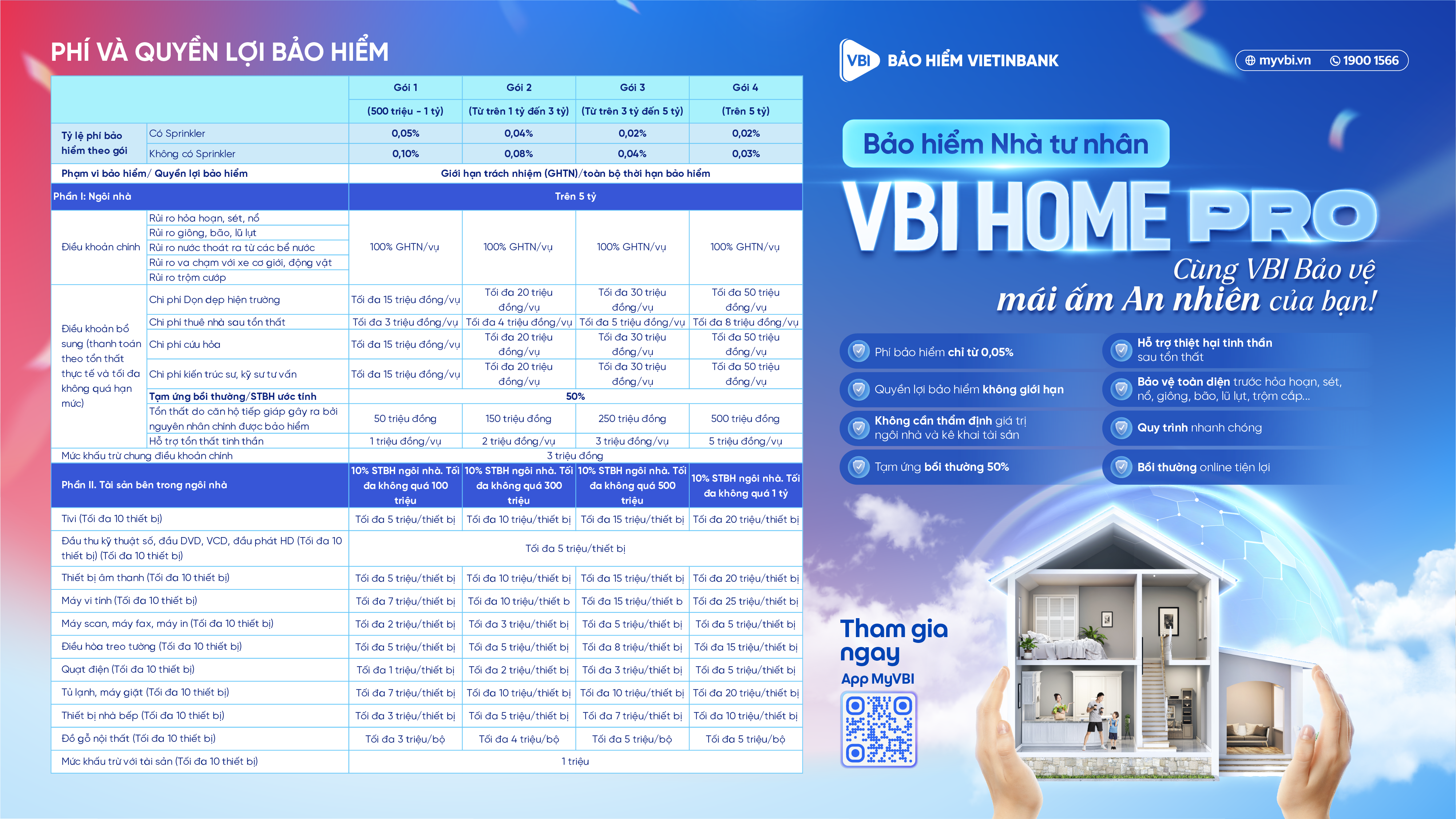 Nếu chẳng may nhà bạn xảy ra tổn thất, hỏa hoạn, cuộc sống của bạn và người thân sẽ ảnh hưởng như thế nào? Bảo hiểm VBI sẽ bảo vệ cho ngôi nhà và tài sản bên trong ngôi nhà của bạn, giúp bạn hoàn toàn an tâm.